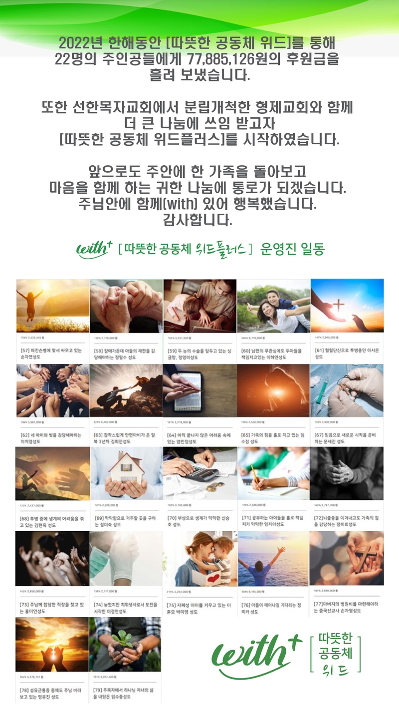 2022년 따뜻한 공동체 위드를 통해 사랑을 모아주셔서 감사합니다.